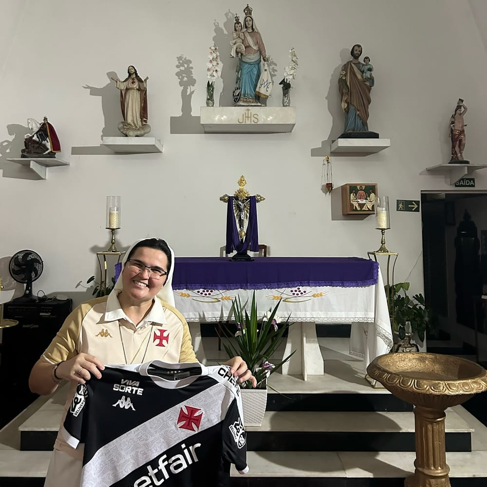 A freira mercedária Elaine Maria foi surpreendida nos últimos dias com um presente inusitado: uma camisa oficial do Vasco da Gama.